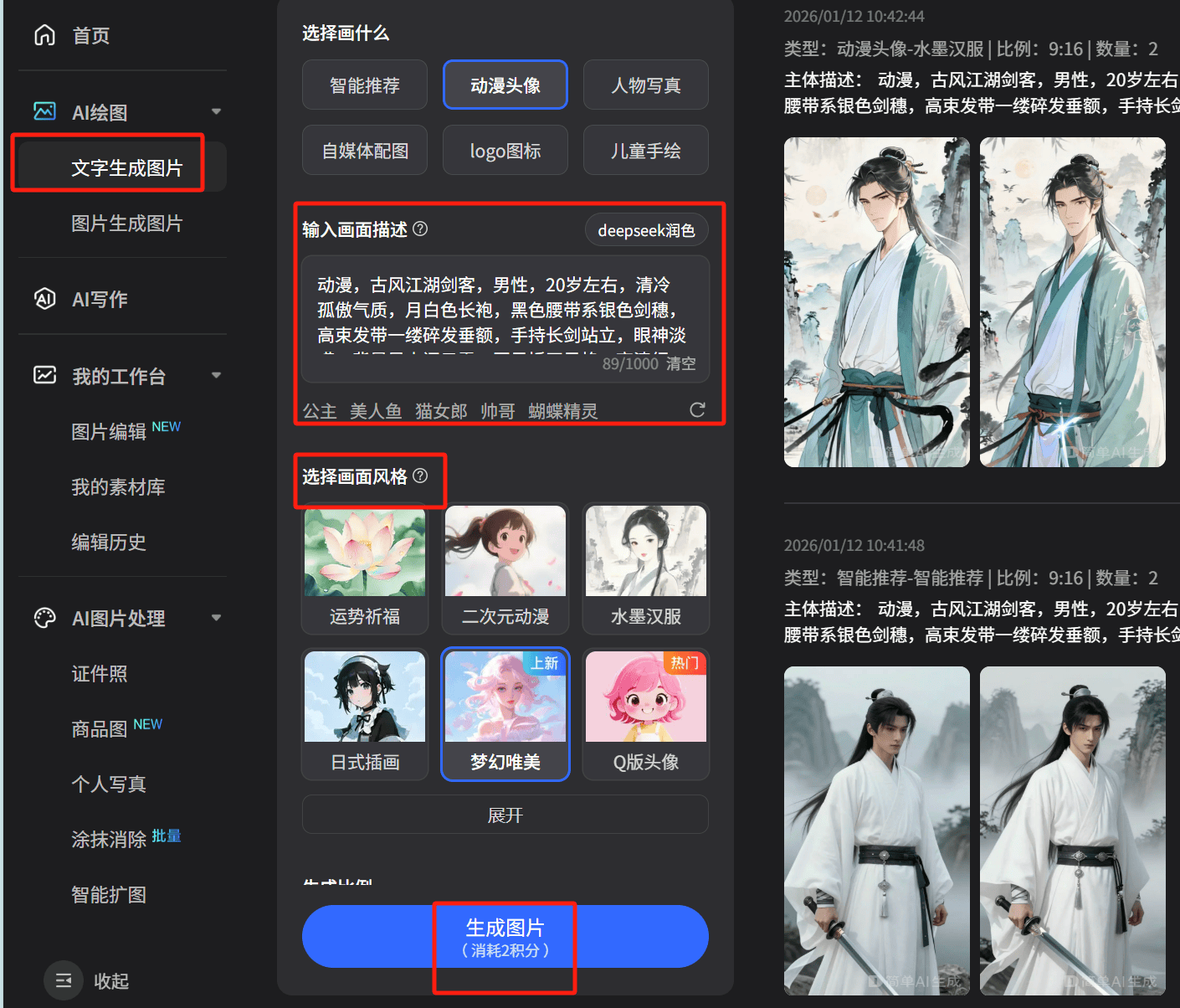 提醒词是AI生成的环节,现正在打开搜狐简单AI,焦点公式:脚色身份+性格气质+服饰细节+发型妆容+姿势动做+布景气概+画质要求。很难精准传送给画师,要么太柔弱,